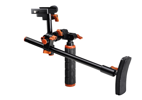 This looks to be a nice single arm DSLR support rig: all aluminum and stainless steel, modular, lightweight and at $89,- very reasonably priced! I don't see a camera plate for the quickrelease plate so I'm curious how that works... I hope they don't charge 50,- just so you can mount your camera ;-)